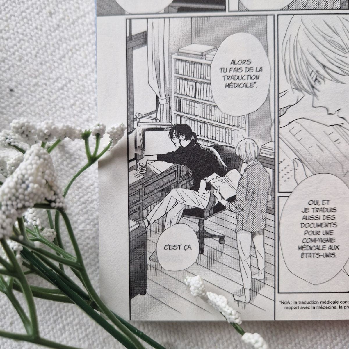 De plus, l'œuvre aborde un sujet qui me tient particulièrement à cœur : la traduction. Dans ce récit, plusieurs formes de traduction apparaissent: traduction technique, médicale, récit. On peut découvrir aussi à chaque fin de chapitre une petite note dévoilant des définitions mais aussi des astuces de traduction qui permettent d’en apprendre beaucoup pour les plus intéressés.