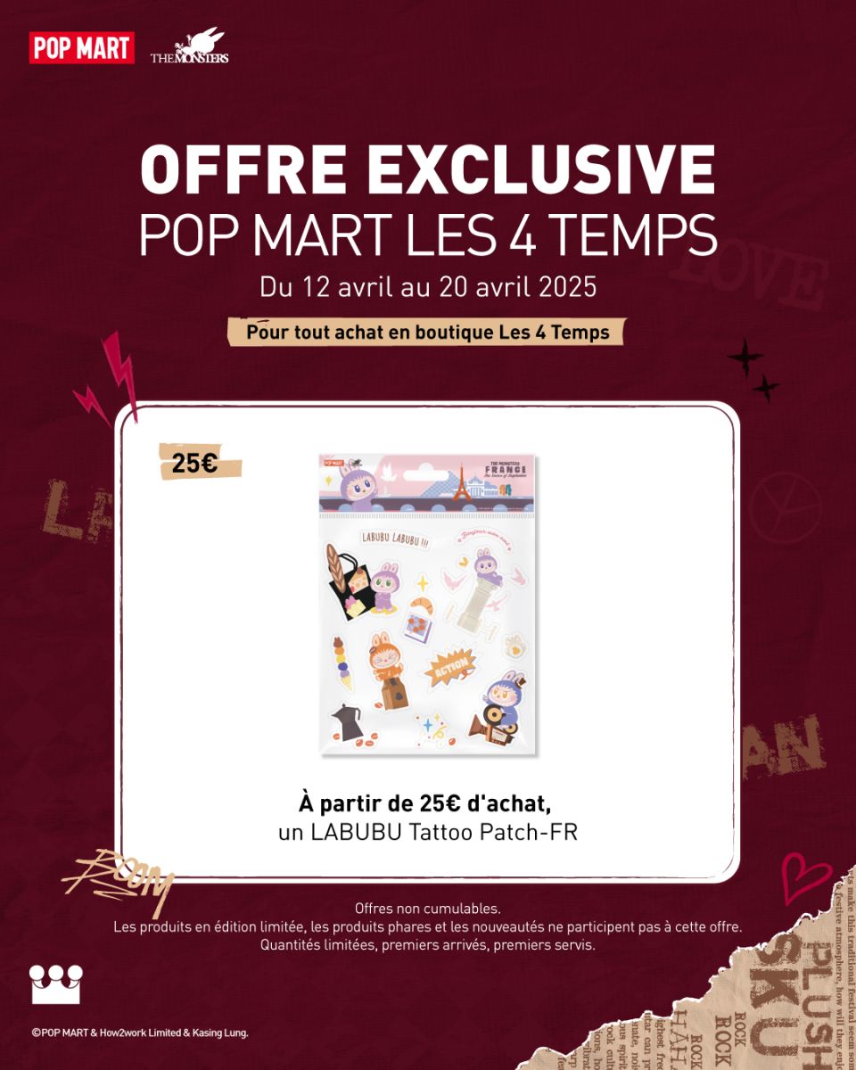 Dès 25€ d’achat, un LABUBU Tattoo Patch offert