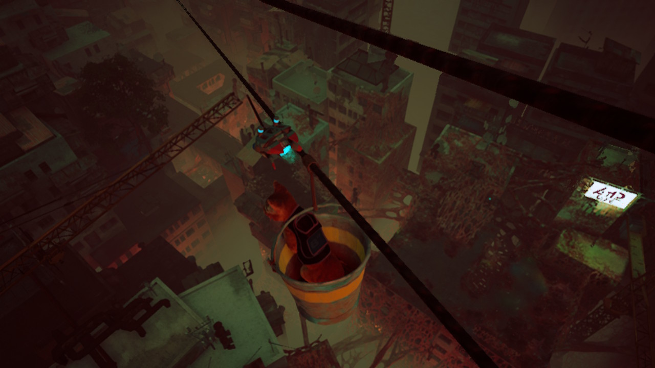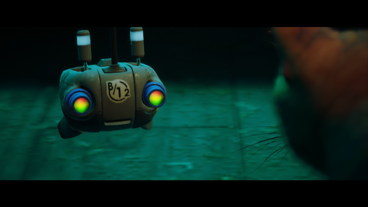 Par la suite, notre aventure se fera avec un drone volant, B-12. On trouvera même de quoi se défendre face aux menaces rencontrées. L'exploration est importante dans le jeu afin de découvrir la vraie histoire de cette vie souterraine. En traversant les égouts, la ville ou encore des endroits glauques que le félin devra utiliser au mieux son agilité afin de s’y faufiler.