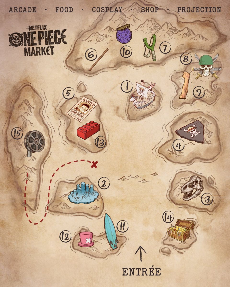 Véritable voyage à travers les mers de l’imaginaire, le ONE PIECE MARKET propose aux participants de naviguer à travers Grand Line. Du mythique Baratie à Logue Town, les fans pourront explorer les décors officiels de la série et vivre des expériences dignes des plus grands corsaires.